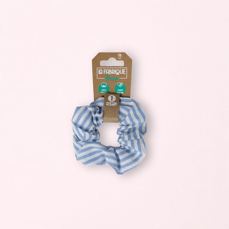 Ce chouchou grand modèle est fabriqué à partir de tissu de coton recyclé.