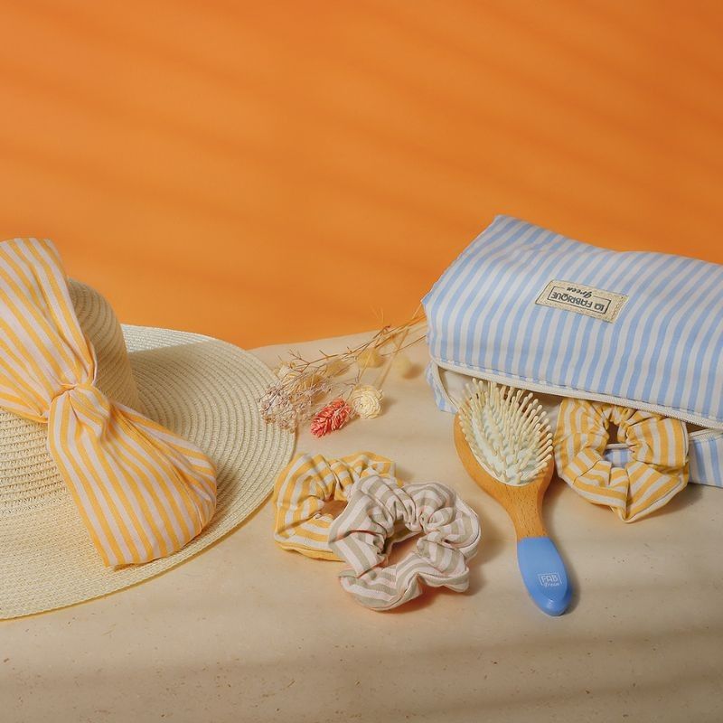 Découvrez notre trousse à rayures bleues, proposée en édition limitée et confectionnée en coton 100% recyclé. À la fois résistante et agréable au toucher, elle allie style estival et praticité.